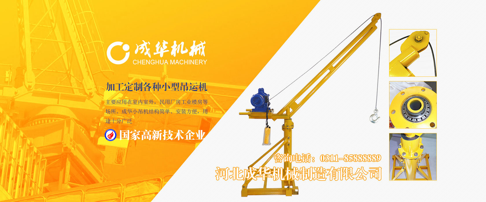 河北成華機(jī)械制造有限公司為國(guó)家高新技術(shù)企業(yè),旗下吊運(yùn)機(jī)制造廠是家專業(yè)生產(chǎn)制造便攜式小吊機(jī)、手提式小吊機(jī)附屬工廠,我廠產(chǎn)品主要應(yīng)用在室內(nèi)室外,民用廠房工業(yè)樓房等場(chǎng)所。成華小吊機(jī)結(jié)構(gòu)簡(jiǎn)單、安裝方便,用途十分廣泛,小吊機(jī)產(chǎn)品被廣泛應(yīng)用于機(jī)械制造、電子、汽車...